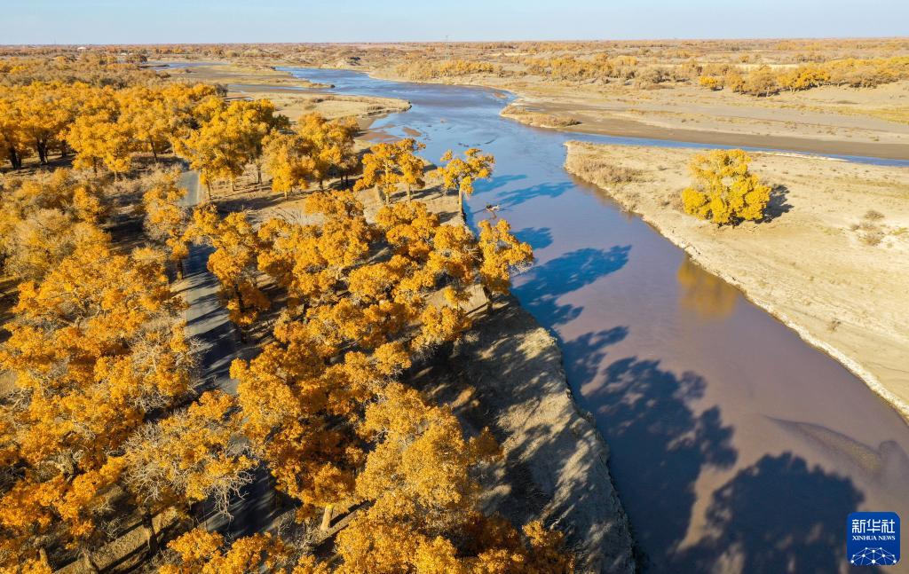 金秋時節,內蒙古自治區阿拉善盟額濟納旗的胡楊林披上“金裝”。