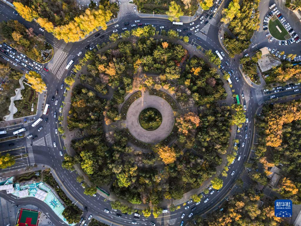 這是10月24日拍攝的長春市新民廣場秋景(無人機照片)。