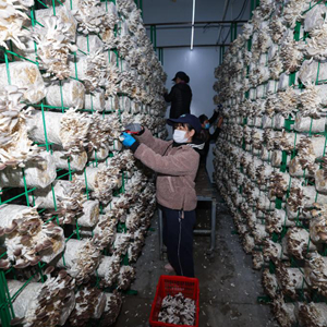 10月25日,村民在杭州市臨安區(qū)玲瓏街道雙源村的鼎新農(nóng)業(yè)基地食用菌共富工坊采收秀珍菇。該農(nóng)業(yè)基地以培育、種植食用菌為主,為當?shù)靥峁┚蜆I(yè)崗位60余個。