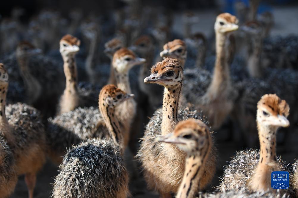 這是辛集市小辛莊鄉小辛莊村辛南鴕鳥養殖園內飼養的鴕鳥幼鳥(10月25日攝)。