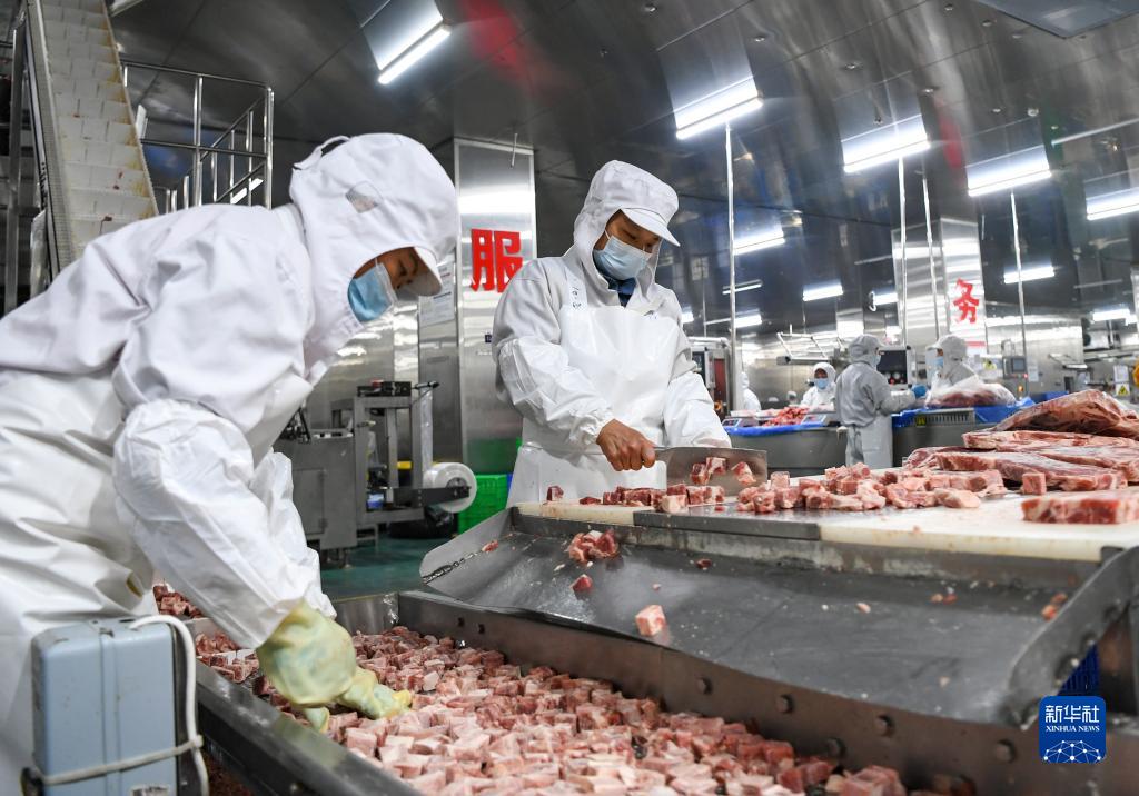 10月23日,工人在重慶市豐都縣興義鎮(zhèn)恒都集團(tuán)牛肉加工車間作業(yè)。