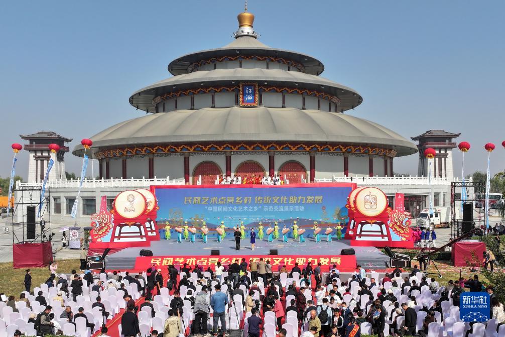 10月25日,演員在“中國民間文化藝術之鄉”示范交流展示活動現場表演節目(無人機照片)。
