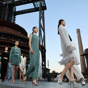 模特在北京首鋼園三高爐南廣場走秀(2022年9月1日攝)。首鋼凝結(jié)著首都的工業(yè)記憶,經(jīng)過重新設(shè)計與改造,以三高爐為代表的首鋼工業(yè)地標(biāo)煥發(fā)新活力,助力首都高質(zhì)量發(fā)展。