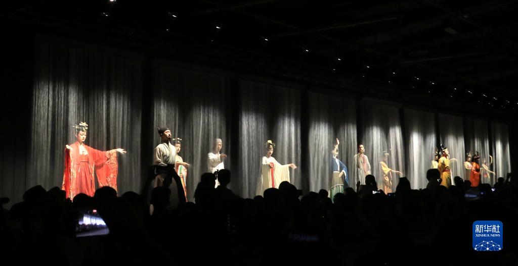 室內(nèi)情景體驗(yàn)劇《又見(jiàn)敦煌》在甘肅敦煌上演(2023年8月9日攝)。該劇以人物故事為脈絡(luò),讓觀眾近距離感受古老敦煌的文化魅力。
