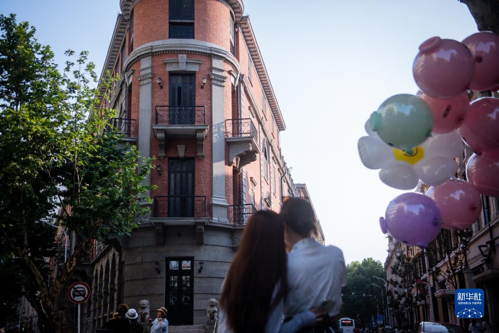 游客在武漢市漢口歷史風貌區(qū)巴公房子前拍照(2023年6月6日攝)。隨著漢口歷史風貌區(qū)舊城改造城市更新項目的推進,風貌區(qū)內(nèi)一座座老建筑被修繕、改造,融入現(xiàn)代生活,煥發(fā)新的生命。