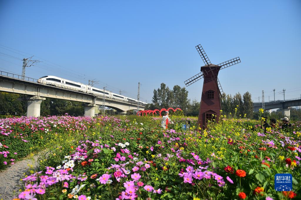 10月25日,市民在日照市東港區碳匯花海打太極拳。