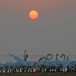 當(dāng)日,在山東省榮成市天鵝湖,天鵝沐浴晨光,與湖光山色構(gòu)成詩情畫意的美景。