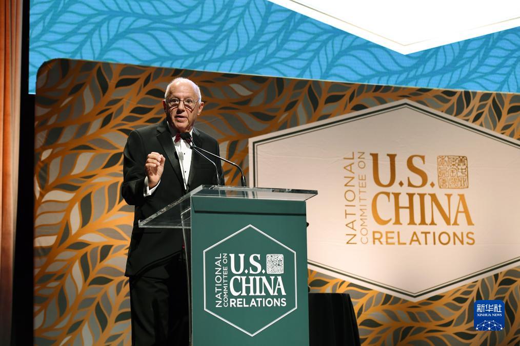 10月24日,美中關系全國委員會會長歐倫斯在美國紐約舉行的美中關系全國委員會年度頒獎晚宴上講話。
