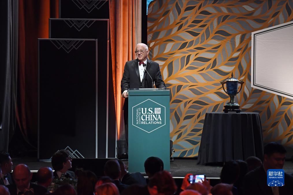 10月24日,美中關系全國委員會會長歐倫斯在美國紐約舉行的美中關系全國委員會年度頒獎晚宴上講話。