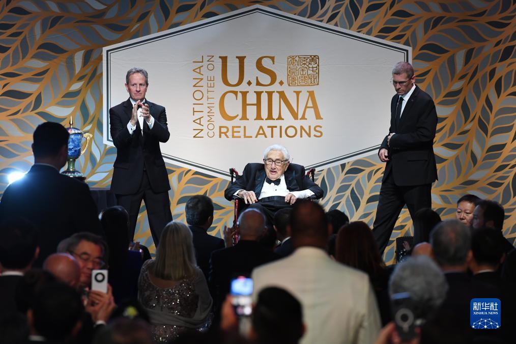 美中關(guān)系全國(guó)委員會(huì)24日在紐約舉行年度頒獎(jiǎng)晚宴,兩國(guó)領(lǐng)導(dǎo)人向晚宴致賀信。晚宴向美國(guó)前國(guó)務(wù)卿基辛格頒獎(jiǎng),表彰他為中美關(guān)系發(fā)展所作的卓越貢獻(xiàn)。百歲高齡的基辛格在接受頒獎(jiǎng)時(shí),全場(chǎng)嘉賓報(bào)以持久熱烈掌聲。他在獲獎(jiǎng)致辭中說(shuō),“我一生中一半時(shí)間都在為美中關(guān)系工作”,美中之間的和平與合作至關(guān)重要,符合兩國(guó)和世界的利益。基辛格呼吁美中兩國(guó)共同推動(dòng)雙邊關(guān)系重回正軌,“正如我50年前所相信的那樣,我們能找到克服困難的出路”。