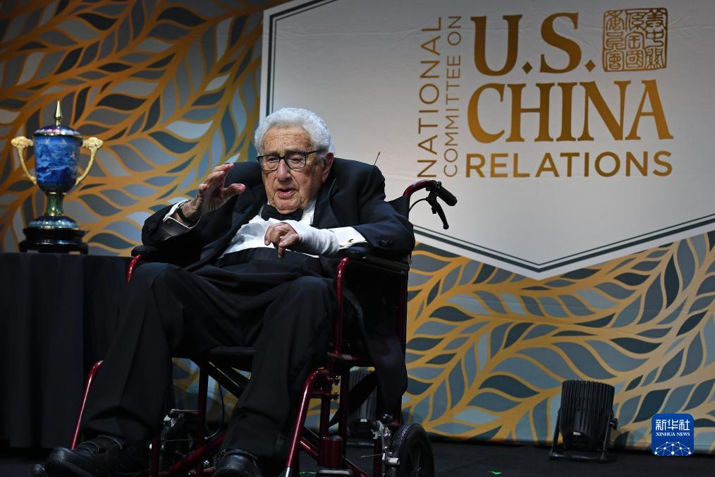 美中關(guān)系全國委員會(huì)24日在紐約舉行年度頒獎(jiǎng)晚宴,兩國領(lǐng)導(dǎo)人向晚宴致賀信。晚宴向美國前國務(wù)卿基辛格頒獎(jiǎng),表彰他為中美關(guān)系發(fā)展所作的卓越貢獻(xiàn)。百歲高齡的基辛格在接受頒獎(jiǎng)時(shí),全場(chǎng)嘉賓報(bào)以持久熱烈掌聲。他在獲獎(jiǎng)致辭中說,“我一生中一半時(shí)間都在為美中關(guān)系工作”,美中之間的和平與合作至關(guān)重要,符合兩國和世界的利益。基辛格呼吁美中兩國共同推動(dòng)雙邊關(guān)系重回正軌,“正如我50年前所相信的那樣,我們能找到克服困難的出路”。