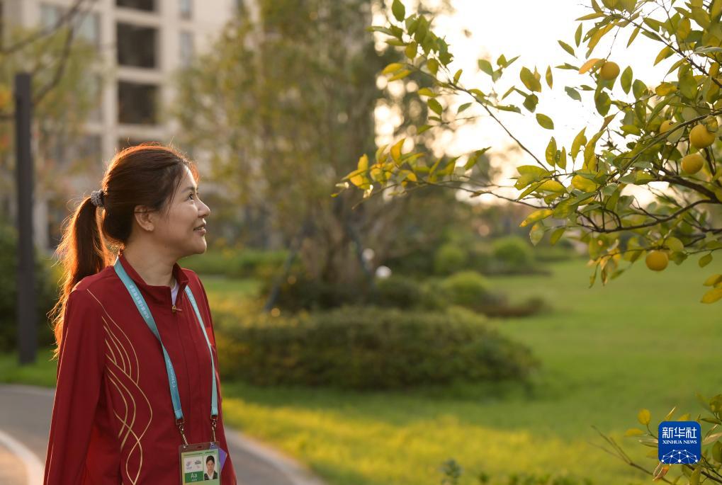 10月23日,盧冬在杭州亞殘運會運動員村內散步。