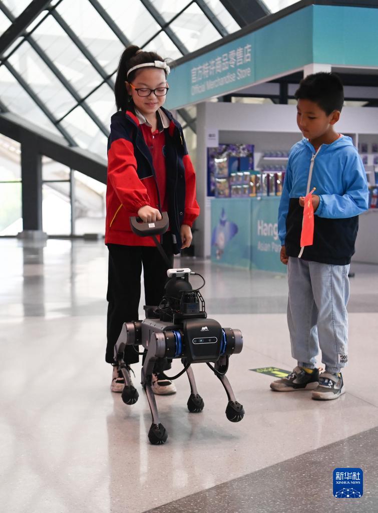 杭州亞殘運會期間,在盲人足球比賽場地拱墅運河體育公園體育場,電子導盲犬“小西”為參加亞殘會的殘障人士提供服務。“小西”由西湖大學機器智能實驗室研發,不僅把場館地圖銘記在“心”,還能“聽懂”中英雙語指令,自動規劃出最優行進路徑,使用者還可以通過牽引它的導盲繩繩端傳感器來調節電子導盲犬的行走速度。