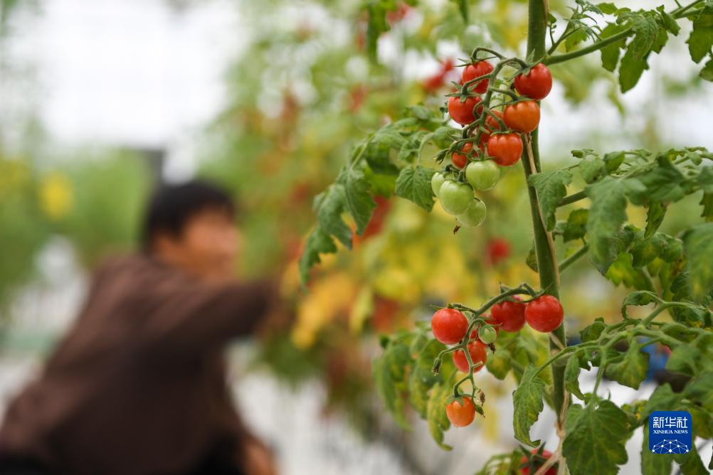 這是10月25日在魯渝(壽光)蔬菜現(xiàn)代產(chǎn)業(yè)園南門科技示范園拍攝的西紅柿。