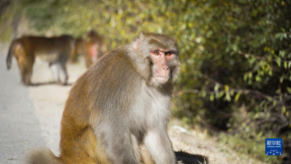 在317國(guó)道旁拍攝的野生藏獼猴(10月25日攝)。