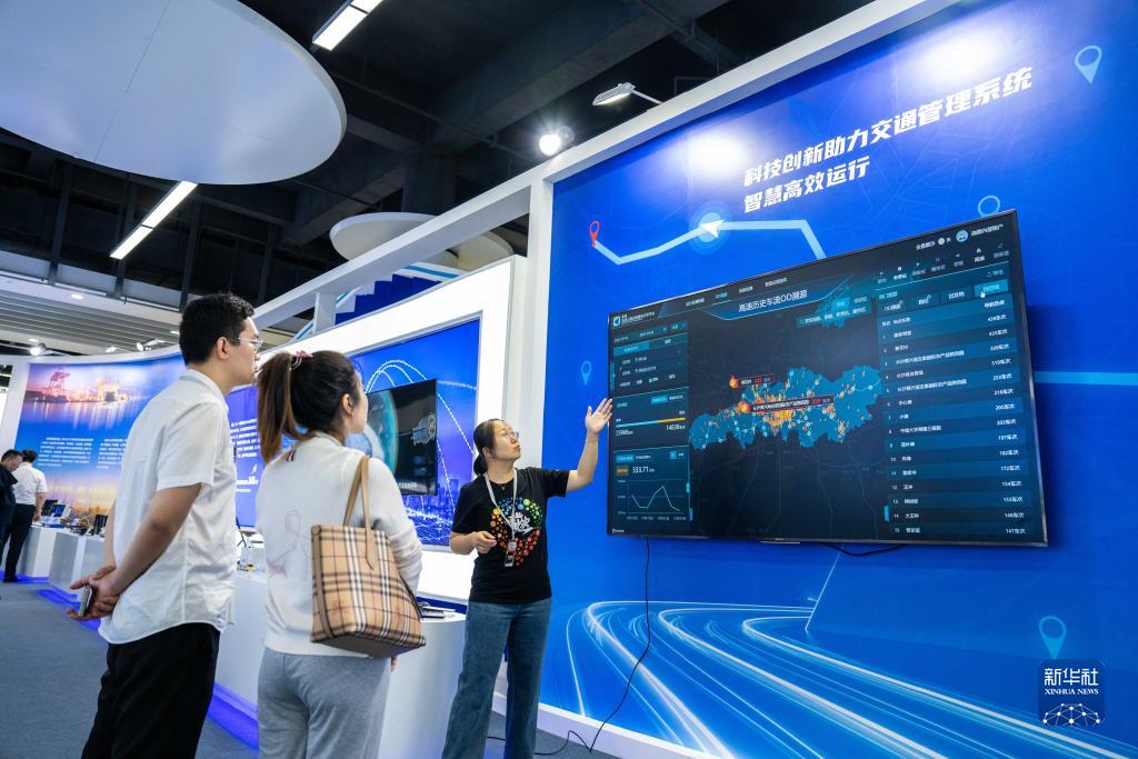 10月26日,在株洲國際會展中心,工作人員(右一)向觀眾介紹北斗技術(shù)在交通管理系統(tǒng)中的應用。