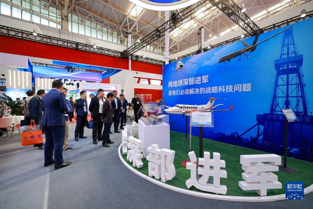 10月26日,在天津梅江會展中心,觀眾在國際礦業展覽會上參觀采礦設備模型。