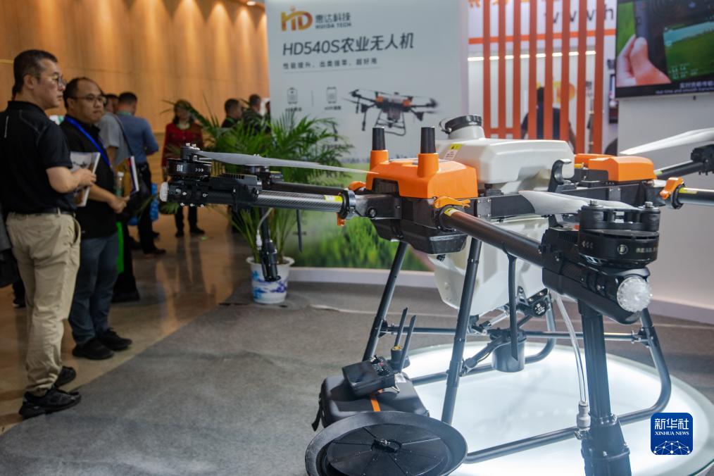 10月26日,觀眾在2023中國國際農業機械展覽會現場參觀農業無人機。
