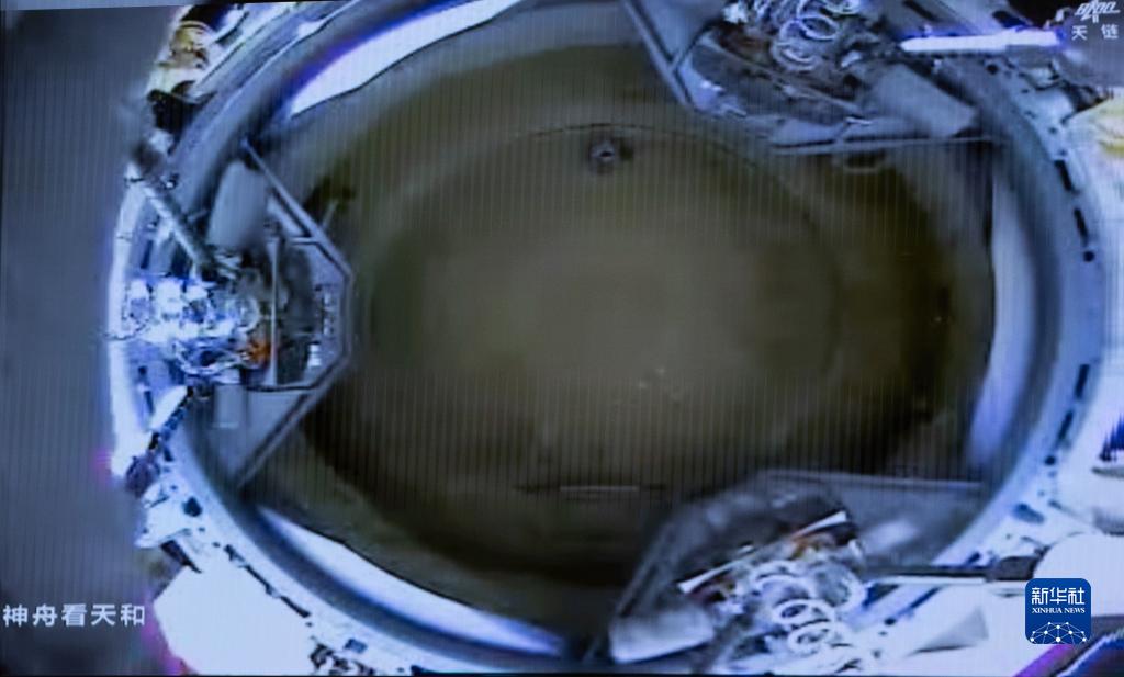 10月26日在北京航天飛行控制中心拍攝的神舟十七號載人飛船和空間站天和核心艙前向端口對接過程的畫面。