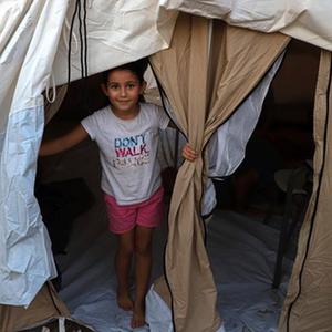 這是10月25日在加沙地帶南部拍攝的一處收容流離失所巴勒斯坦人的臨時營地。