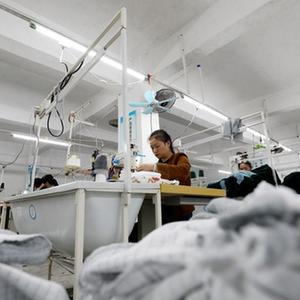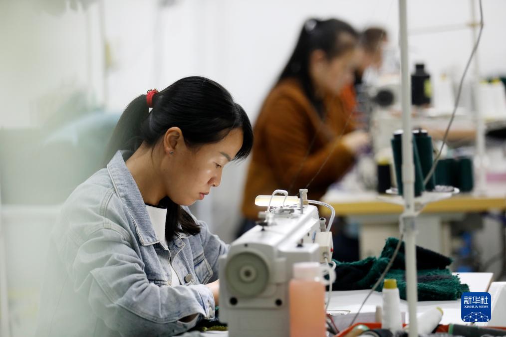 10月25日,村民在資興市州門司鎮州門司村就業幫扶車間加工服裝。