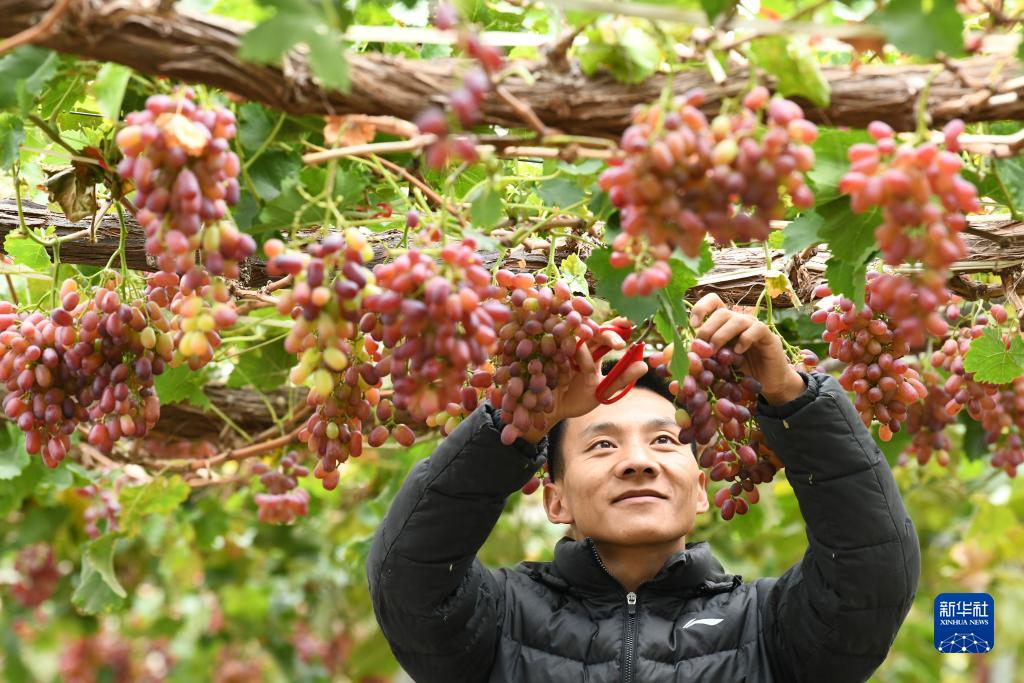 10月24日,果農在云南省麗江市古城區大研街道文智社區的一家葡萄種植基地采摘葡萄。