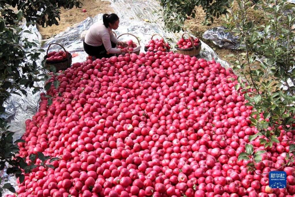 10月24日,在甘肅省平?jīng)鍪徐o寧縣余灣鄉(xiāng)王坪村村民分揀蘋(píng)果。