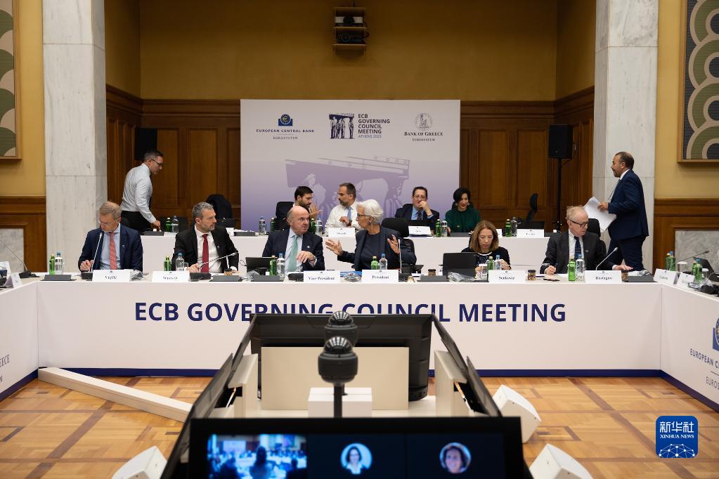 這是10月26日在希臘雅典拍攝的歐洲中央銀行貨幣政策會議現場。