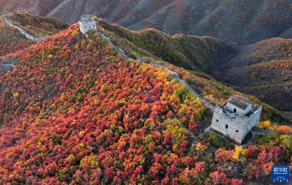 深秋時節(jié),河北省秦皇島市海港區(qū)境內(nèi)的長城景區(qū)層林盡染、色彩斑斕,景色美如畫卷。