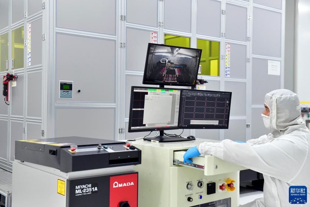 10月26日,在山東奧萊電子科技有限公司生產車間,工作人員在生產OLED第六代金屬掩膜板。