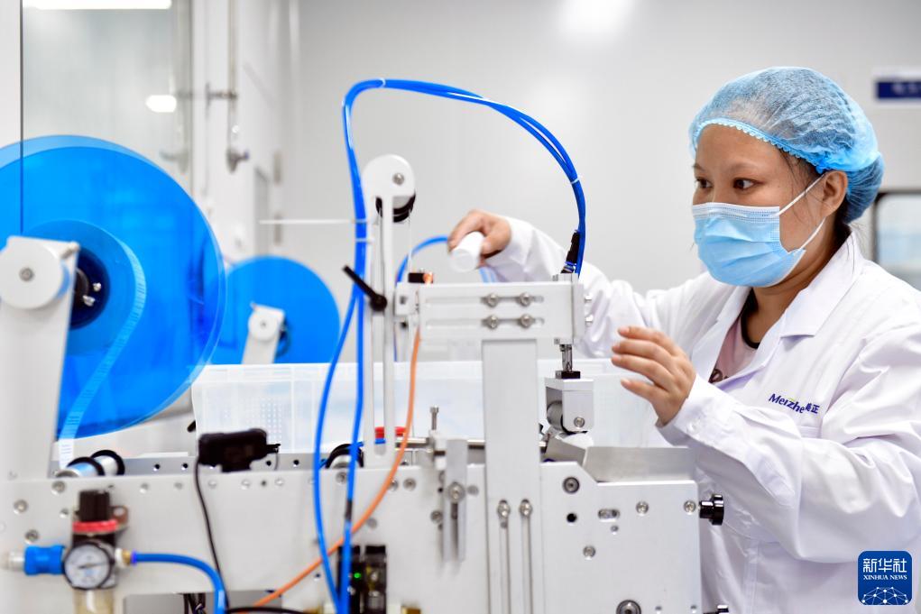 10月26日,在山東美正生物科技有限公司生產車間,工作人員在生產微生物快速檢測盒。