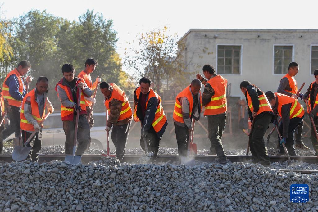 10月26日,施工人員在錦承線金溝站(不含)-朝陽南站(不含)區間段轉正線改造封鎖施工現場作業。