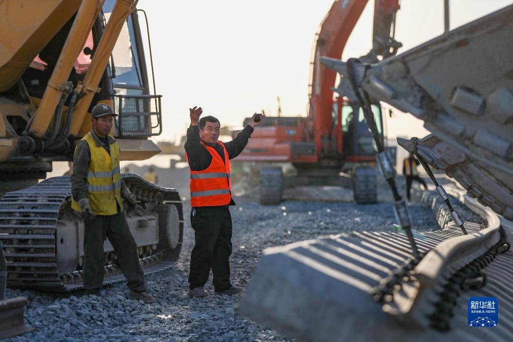 10月26日,施工人員在錦承線金溝站(不含)-朝陽(yáng)南站(不含)區(qū)間段轉(zhuǎn)正線改造封鎖施工現(xiàn)場(chǎng)引導(dǎo)施工機(jī)械作業(yè)。