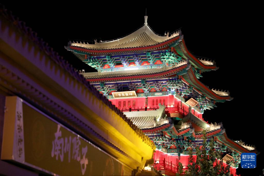 入夜時分,在河北省滄州市中心城區大運河畔,匯集美食、文創、民俗等多種元素的南川老街燈火輝煌。