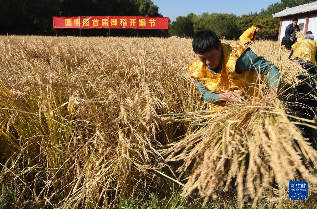 當日,圓明園首屆御稻開鐮節在圓明園“多稼如云”景區舉行。“多稼如云”是圓明園四十景之一,初名“觀稼軒”,是圓明園中最能體現農耕文化的景群,曾經這里荷塘、稻田密布,一派江南水鄉的田園風光。今年夏天,圓明園在“多稼如云”開辟田地種植水稻,還原此處盛時景觀。在國家粳稻中心的專人技術指導下,這片水稻喜獲豐收。
