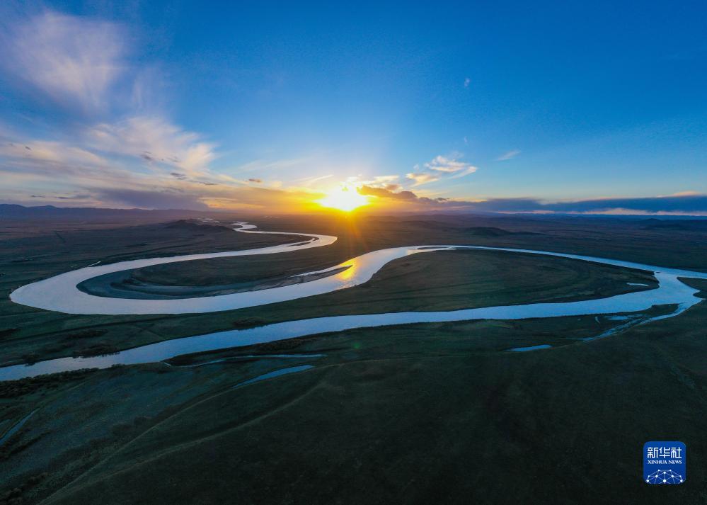 2022年10月17日在四川省阿壩藏族羌族自治州若爾蓋縣拍攝的黃河九曲第一灣(無(wú)人機(jī)照片)。