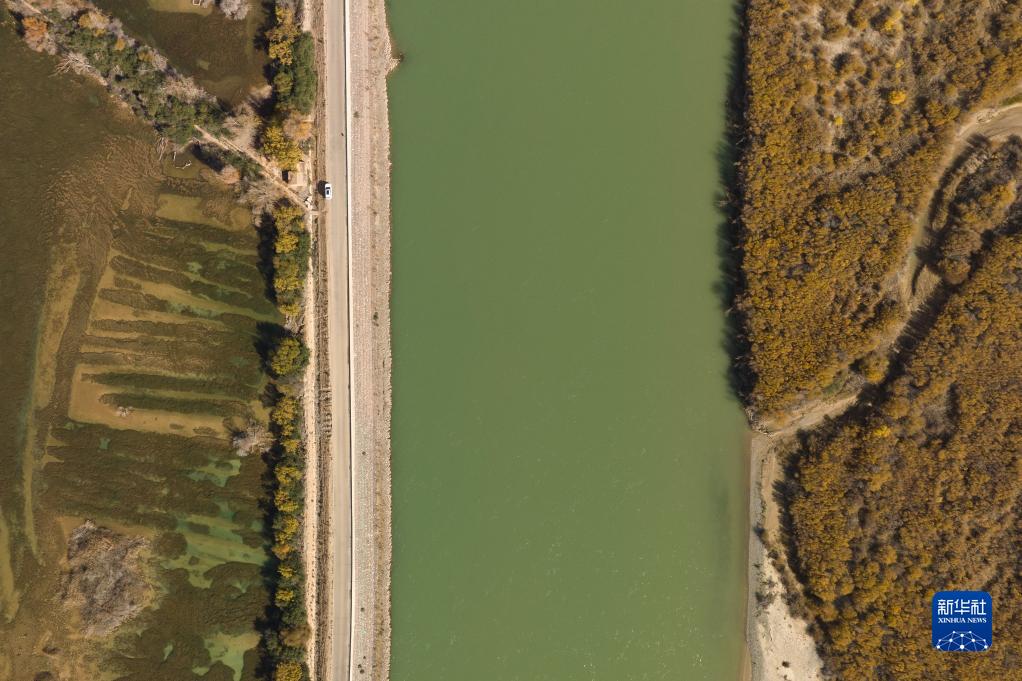 這是10月27日在青海省海南藏族自治州貴德縣境內拍攝的黃河一角(無人機照片)。