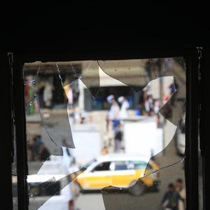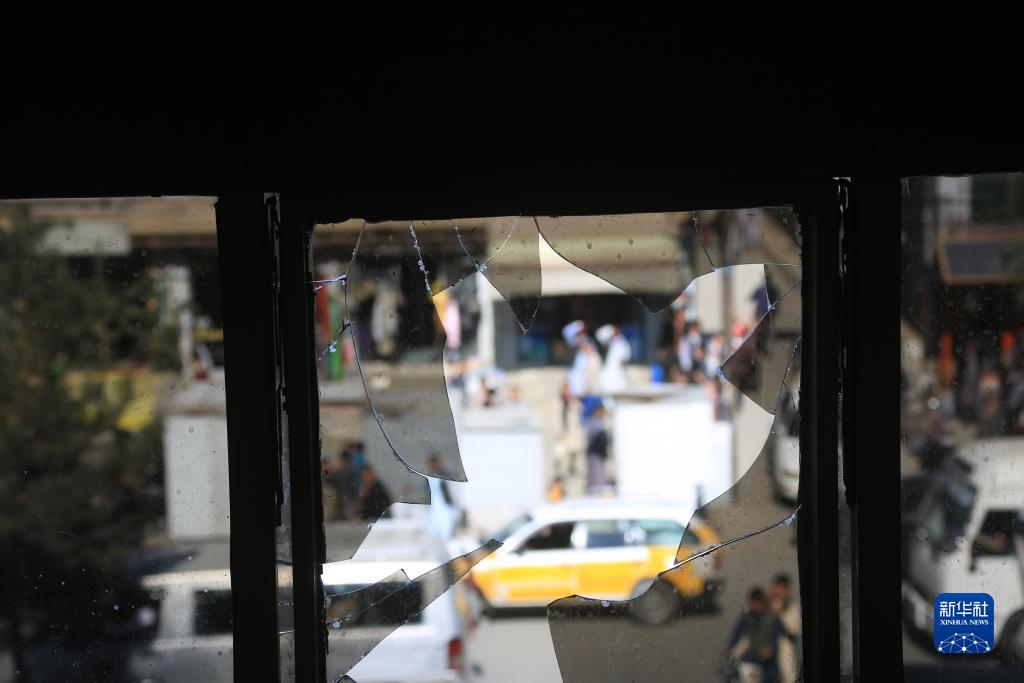 這是10月27日在阿富汗首都喀布爾拍攝的爆炸現場碎裂的玻璃。