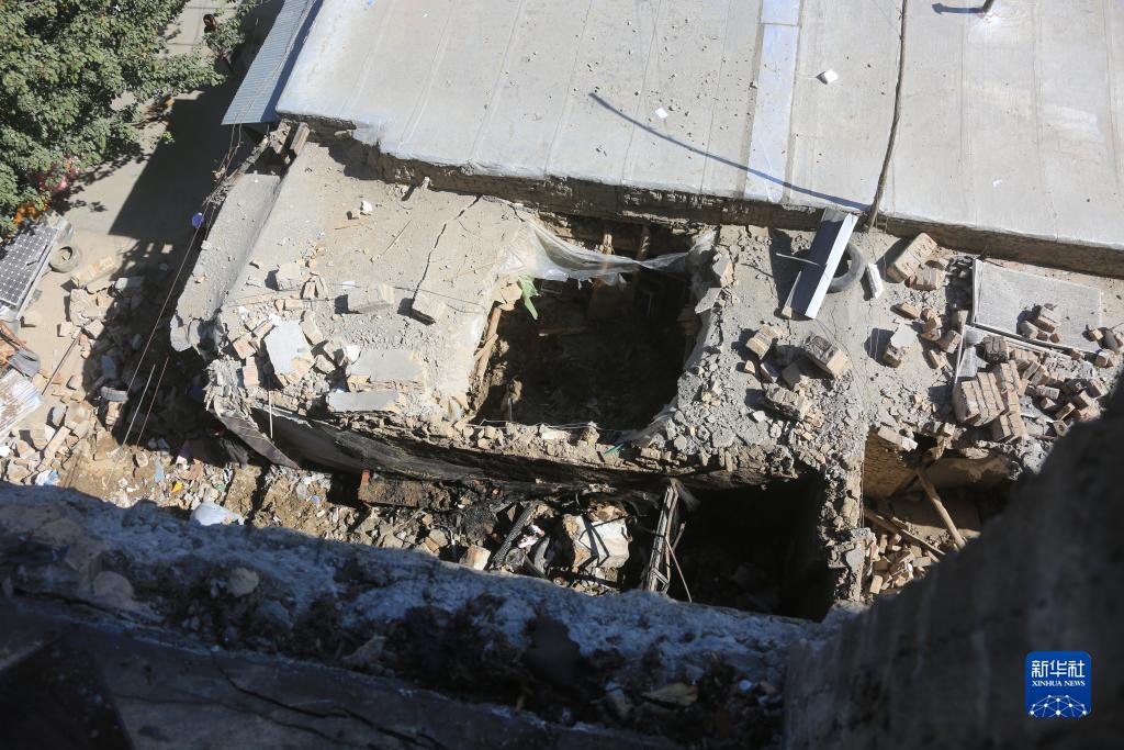 這是10月27日在阿富汗首都喀布爾拍攝的爆炸現場受損的建筑。