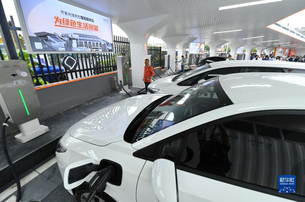 10月27日,新能源汽車在福州市倉山區齊安路的齊安智檢超充站充電。