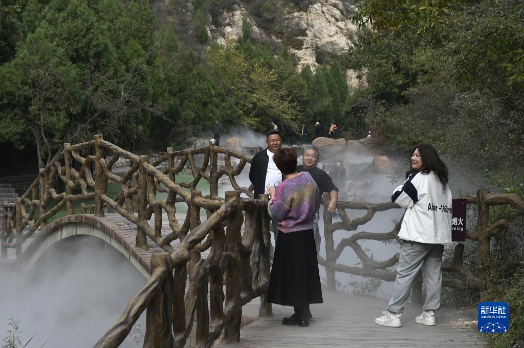 霜降節(jié)氣過后,位于河南省禹州市鳩山鎮(zhèn)的大鴻寨國家森林公園層林盡染,景色宜人,吸引游客前來登高觀景、賞秋拍照。