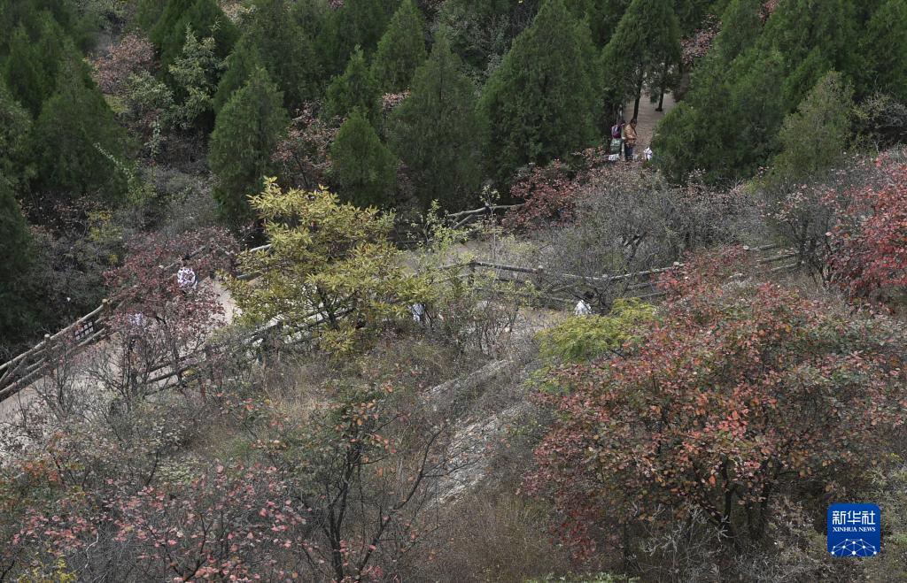 霜降節氣過后,位于河南省禹州市鳩山鎮的大鴻寨國家森林公園層林盡染,景色宜人,吸引游客前來登高觀景、賞秋拍照。