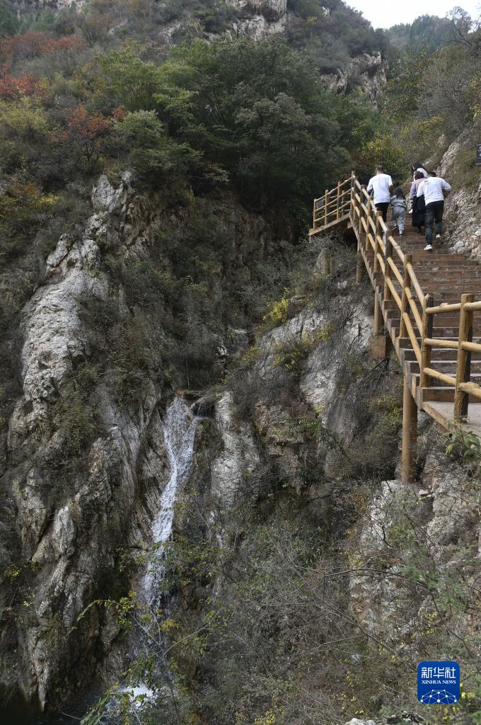 霜降節氣過后,位于河南省禹州市鳩山鎮的大鴻寨國家森林公園層林盡染,景色宜人,吸引游客前來登高觀景、賞秋拍照。