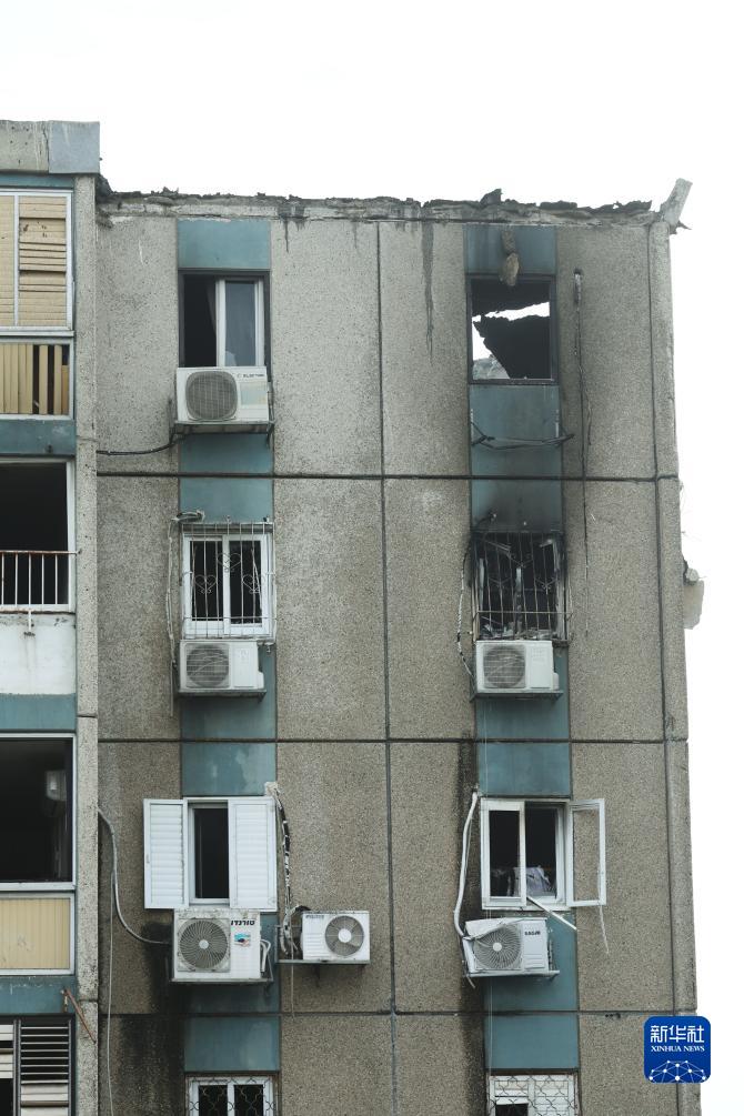 這是10月27日在以色列特拉維夫拍攝的遭到火箭彈襲擊的受損建筑。
