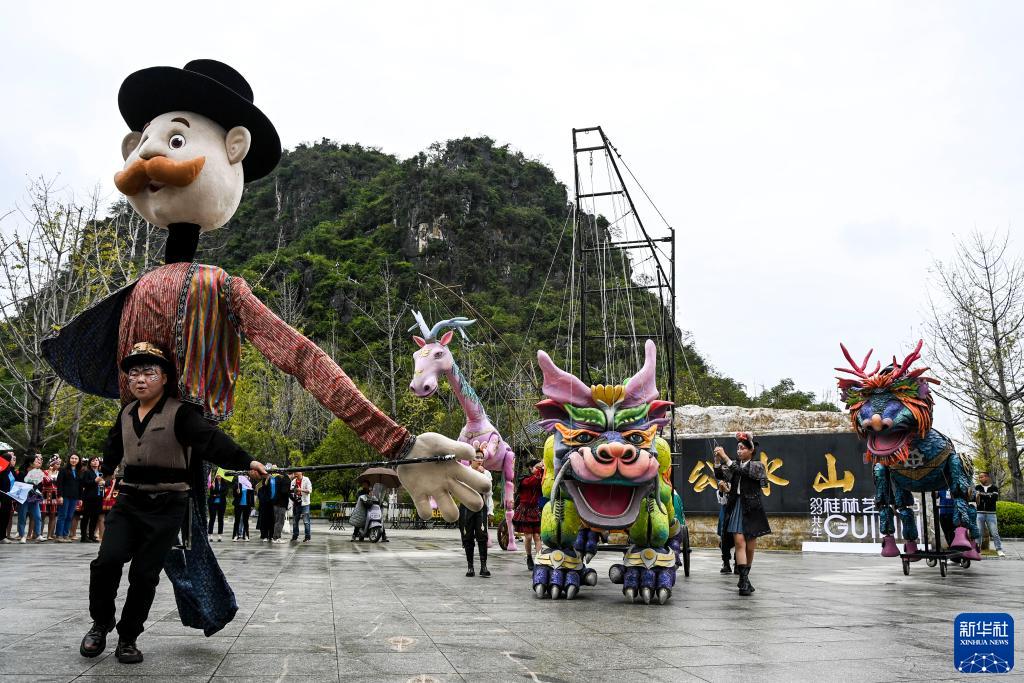 10月27日,在廣西桂林市山水公園,演員們在進行戲劇巡游。