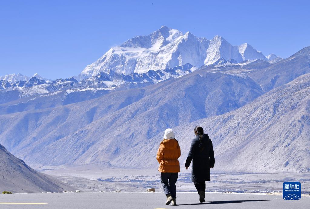 深秋,西藏日喀則市定日縣天高氣爽,游客前來觀賞世界最高峰——珠穆朗瑪峰。