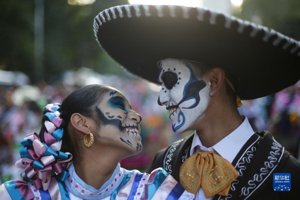 當日,墨西哥首都墨西哥城舉辦“卡特里娜游行”,迎接即將來臨的亡靈節。每年的11月1日和2日是墨西哥的傳統節日亡靈節。