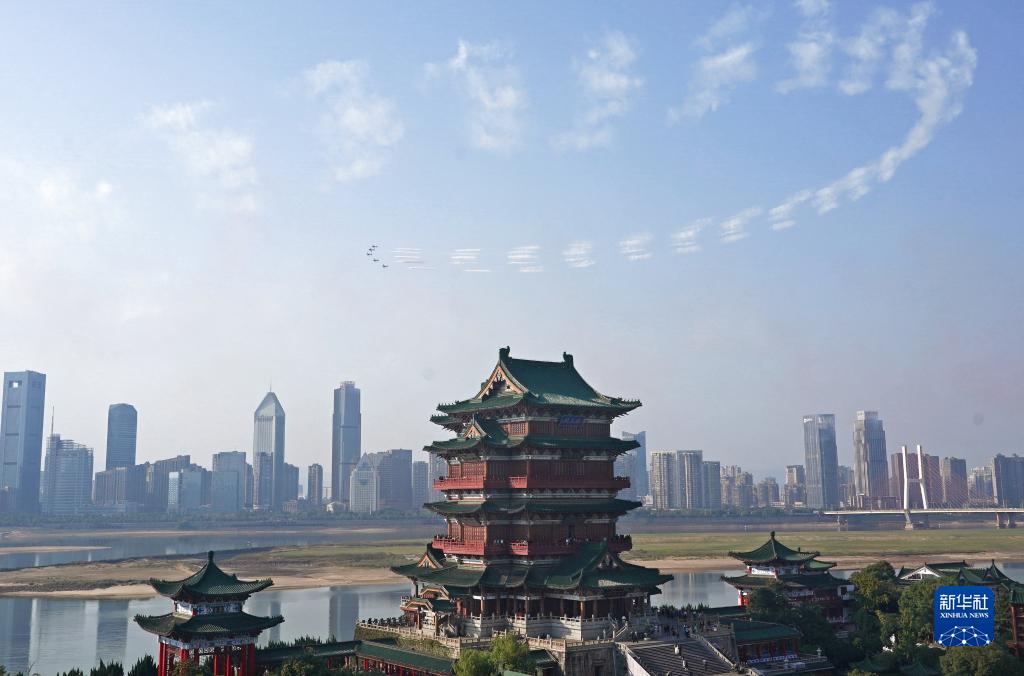 10月24日,歐洲環球之星特技飛行表演隊在南昌滕王閣景區上空進行飛行表演。