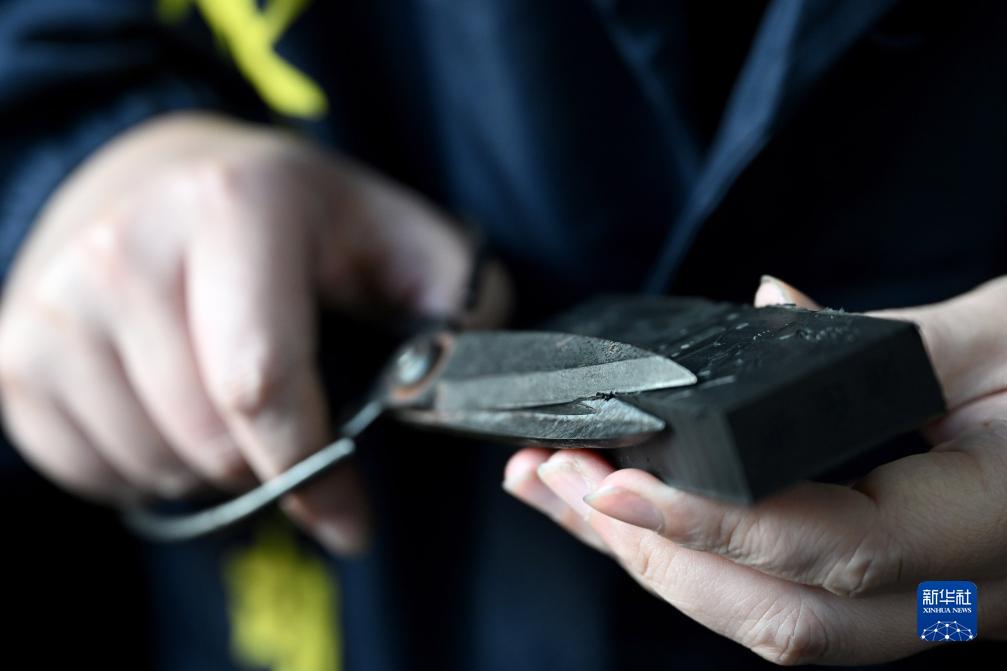 10月24日,在安徽省黃山市歙縣老胡開文墨業有限公司,周健為壓制好的墨修邊。