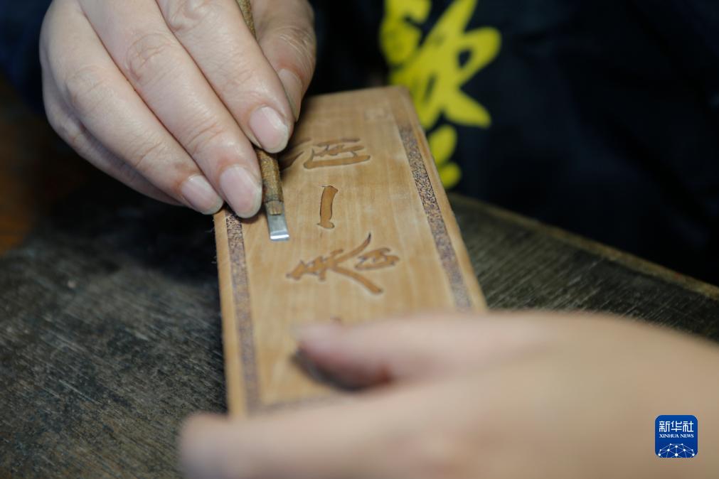 10月24日,在安徽省黃山市歙縣老胡開文墨業有限公司,周健在雕刻墨模。
